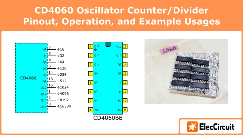 CD4060 CMOS oscillator and counter IC overview covering pinout, operation, and RC and crystal oscillator circuits for timing applications. Read more